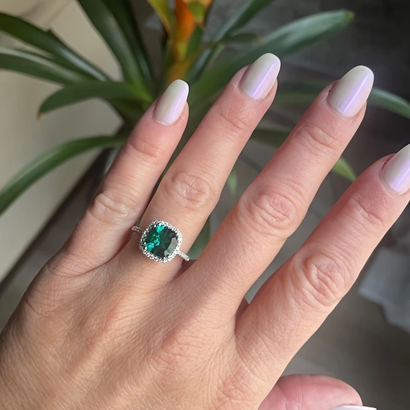 1pc halo design ring with elegant green artificial gemstone.