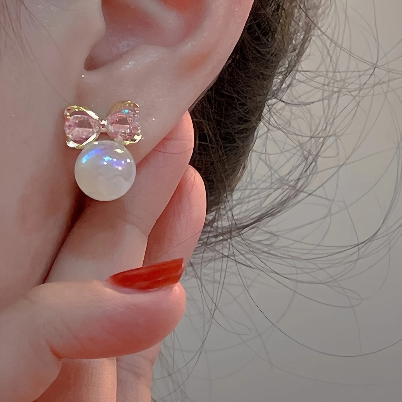 1 pair of elegant stud earrings featuring bowknot and faux pearl design.