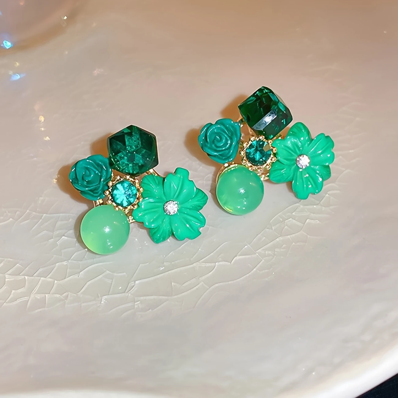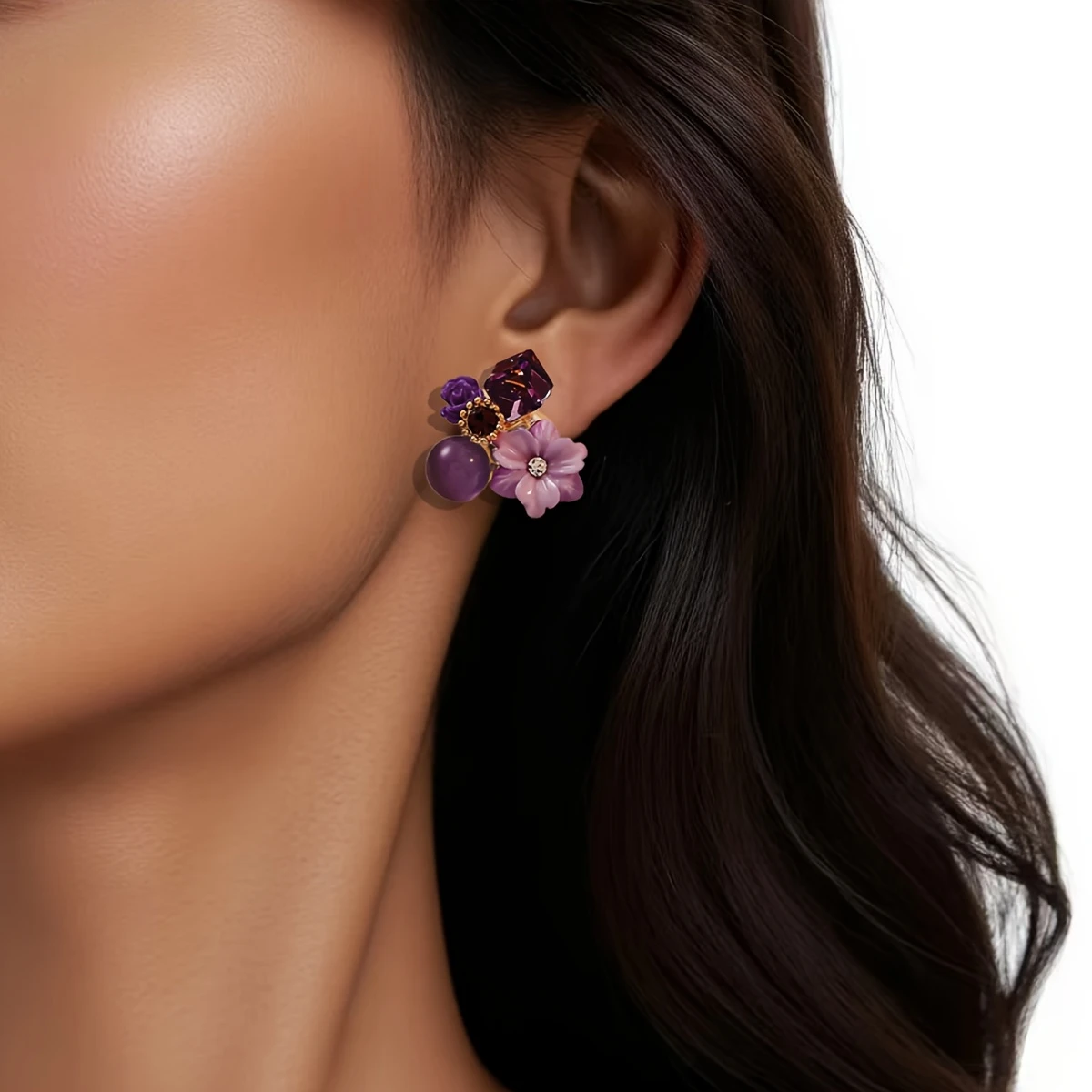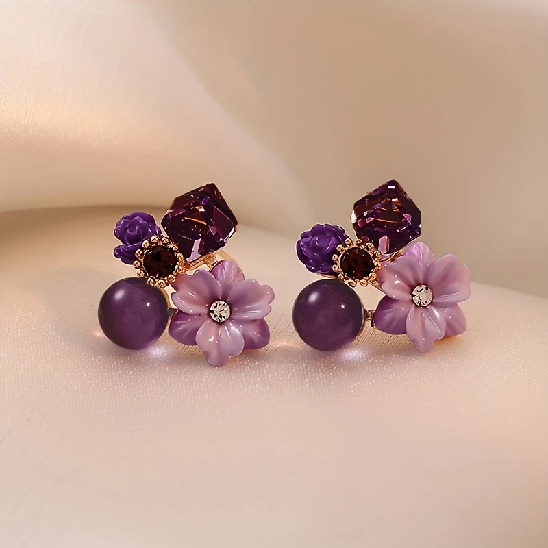 • 1 pair of artificial crystal flower stud earrings for women.