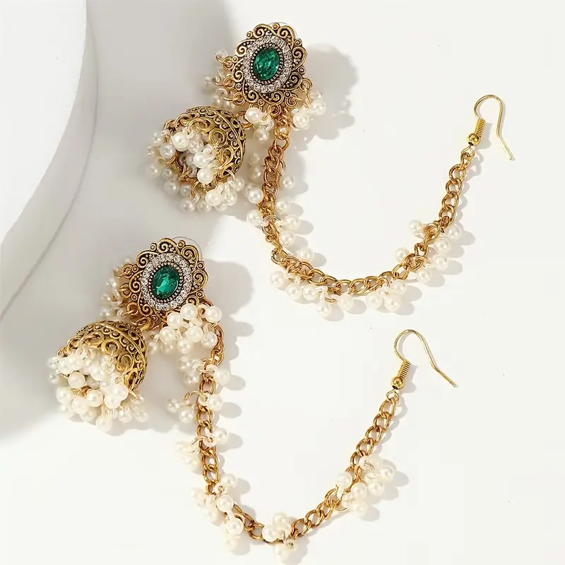 Elegant Middle Eastern-style design with vintage rhinestone and pearl details.