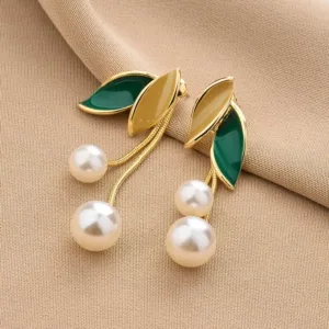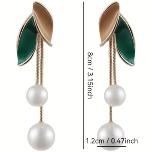 Elegant faux pearl and leaf tassel design for a refined look.