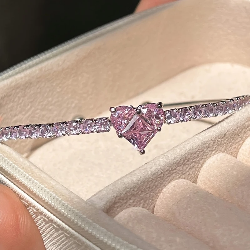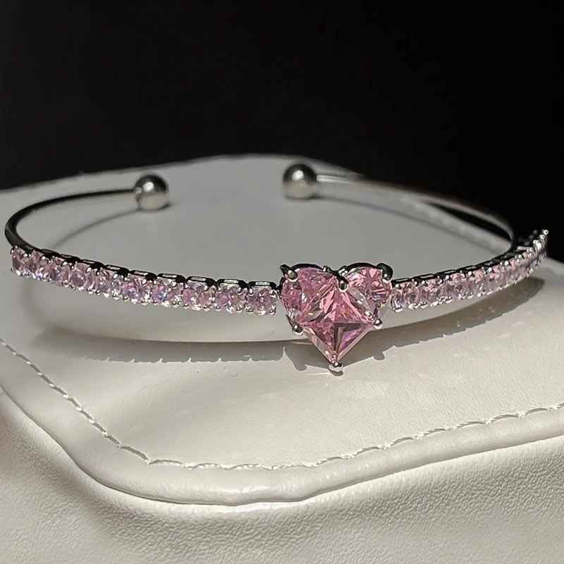 • 1pc pink rhinestone heart cuff bracelet for women.