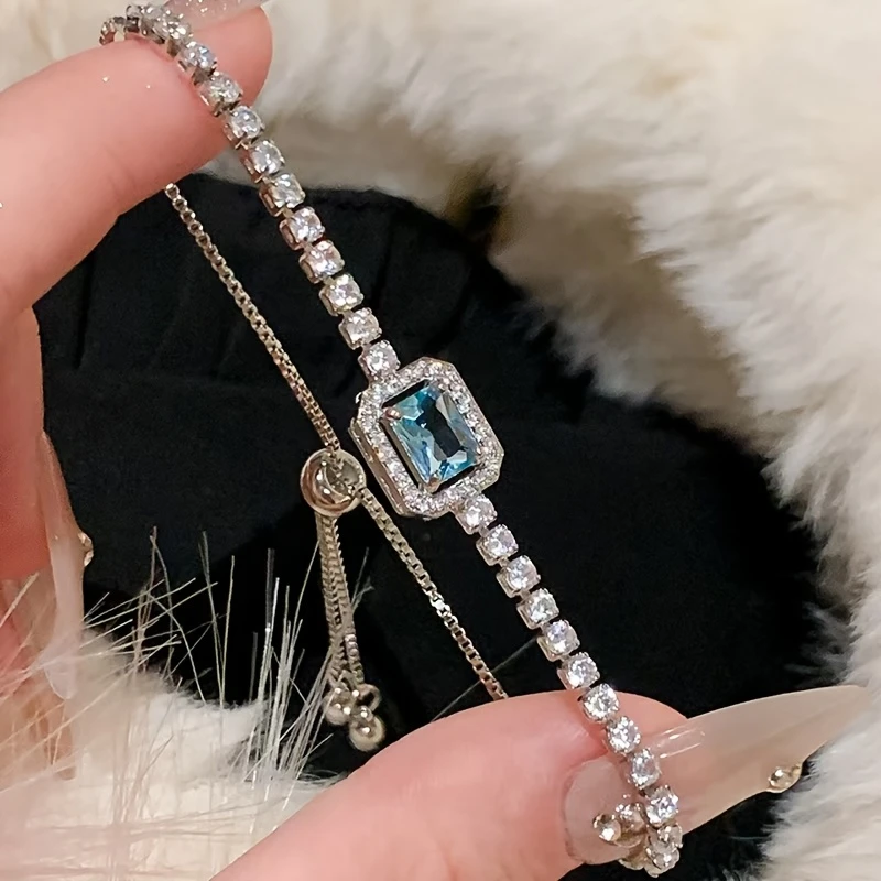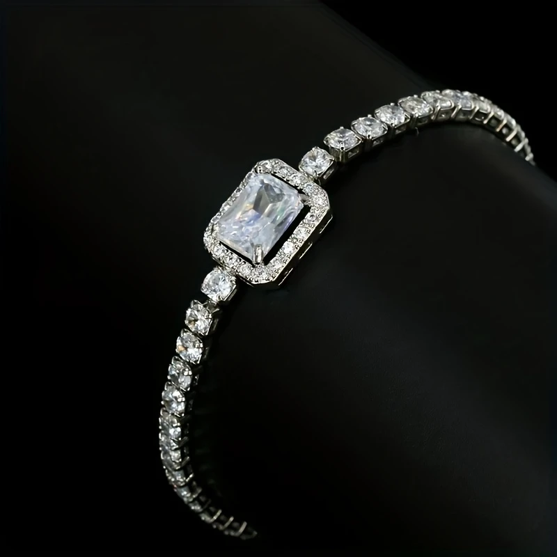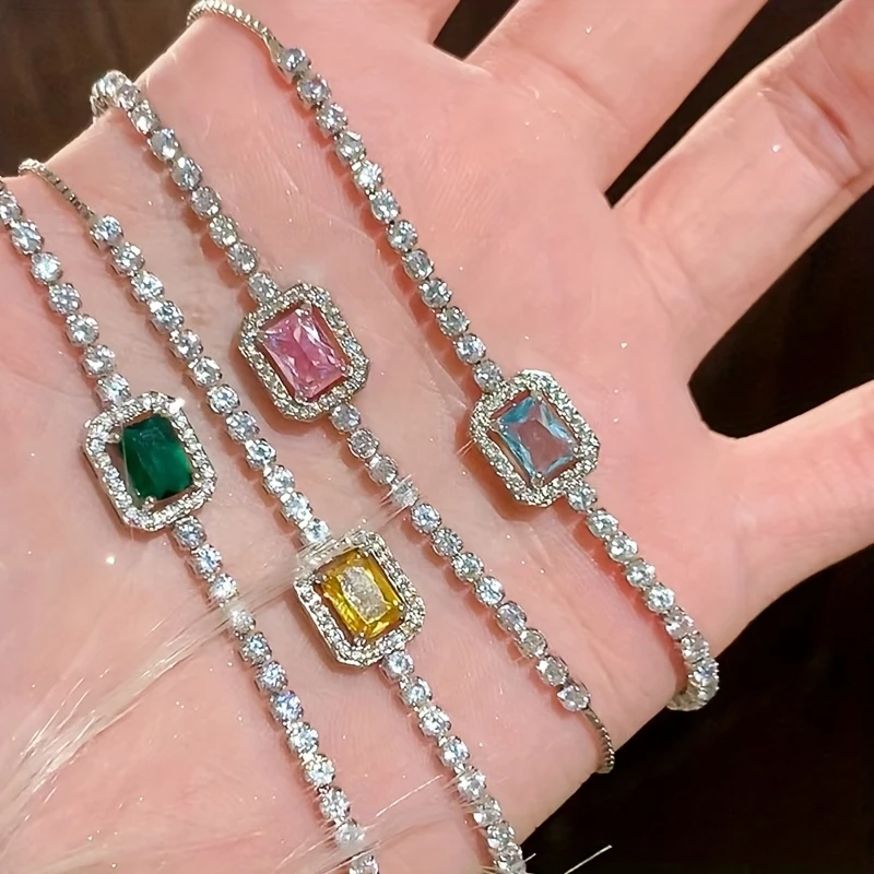 • 1pc sparkling faux gem bracelet with square sugar-cut design.